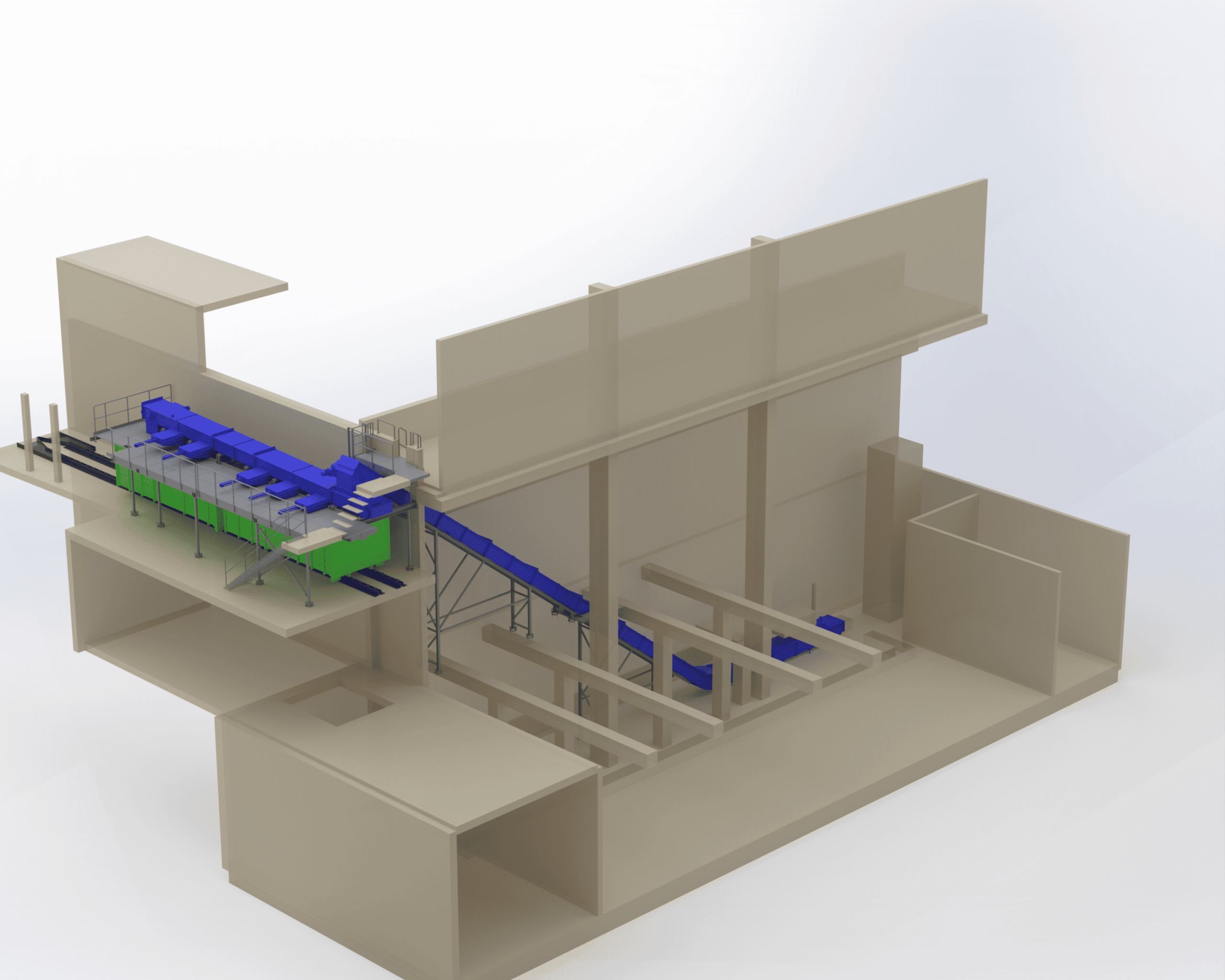 Installation of biomass boiler houses with a thermal capacity of 60MW. – Reconstruction of the wet ash removal system, including two conveyors, a hydraulic gate shut-off valve system, automation, construction works and other auxiliary systems. – Design, manufacturing and installation.